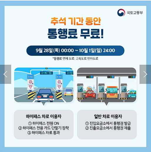 이번 포스팅을 통해서 2023 추석 고속도로 통행료 면제 시간 및 방법 알아보도록 하겠습니다.